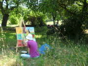 Tagesablauf: Vor dem Frühstück kann man im nahegelegenen Fluß, welcher nur ein kleiner Fußmarsch entfernt ist, schwimmen gehen. Wer möchte kann an Entspannungs- und Aufwachübungen mit anschließender Meditation teilnehmen. Nach dem Frühstück haben wir viel Zeit uns in unsere Malerei zu vertiefen und gegenseitig auszutauschen.